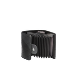 Elegant quilted black genuine leather card wallet with snap closure. Features an accordion-style interior with multiple slots for cards, cash, or receipts. |